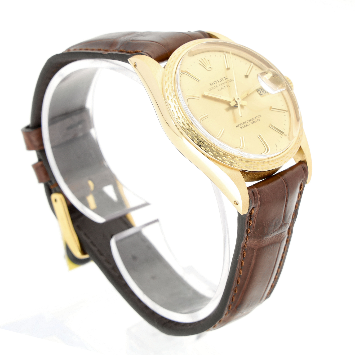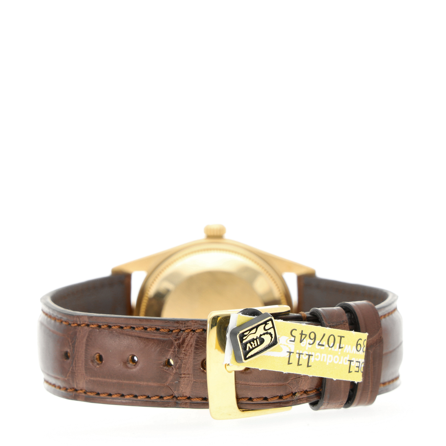 Rolex Date aus dem Jahre 1984 mit einem 34mm Gehäuse in 18K Gold und Dornschließe. Die Herren Rolex Uhr befindet sich in einem sehr guten Zustand.