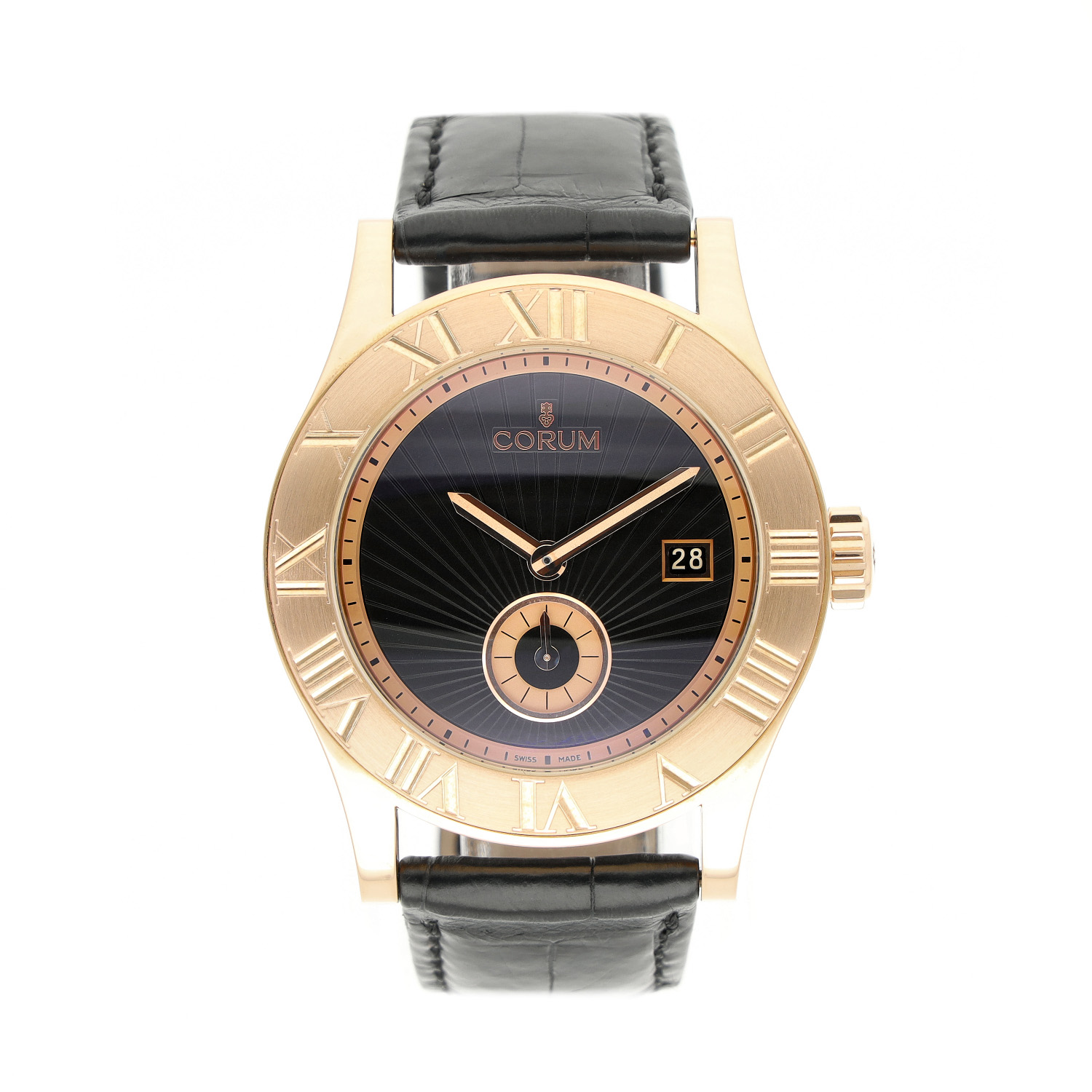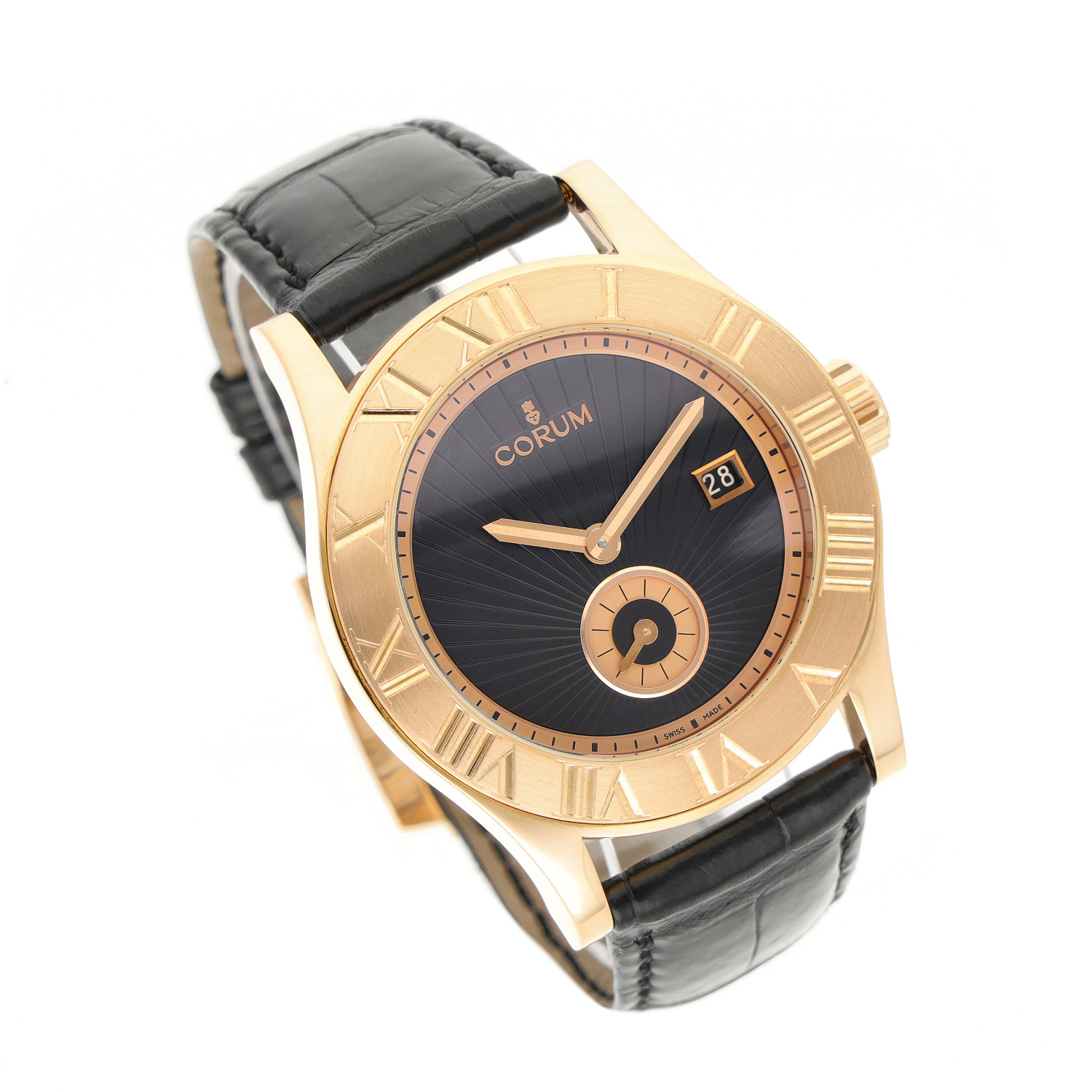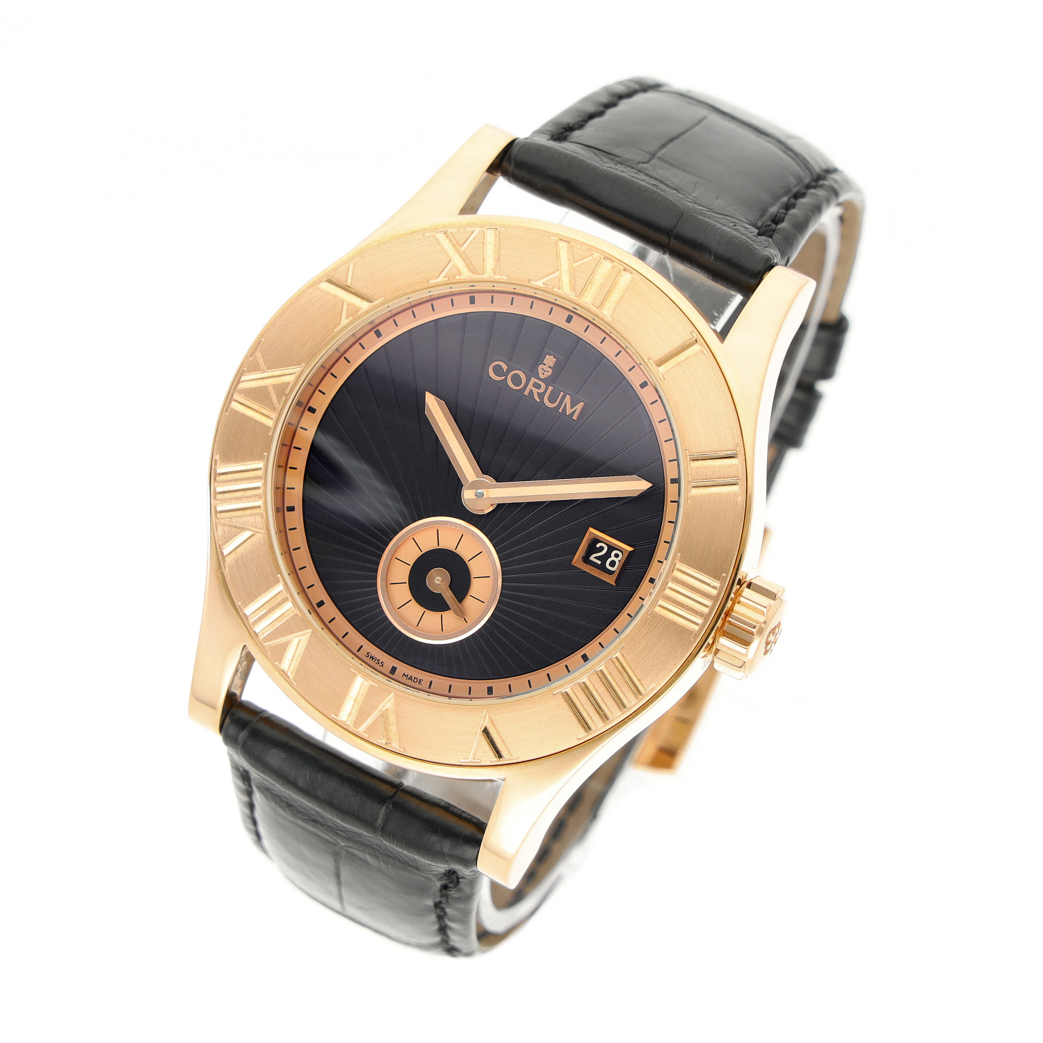 Corum Romulus aus dem Jahre 2010 mit einem 41mm Gehäuse in Roségold und Dornschließe. Die Herren Corum Uhr befindet sich in einem sehr guten Zustand.