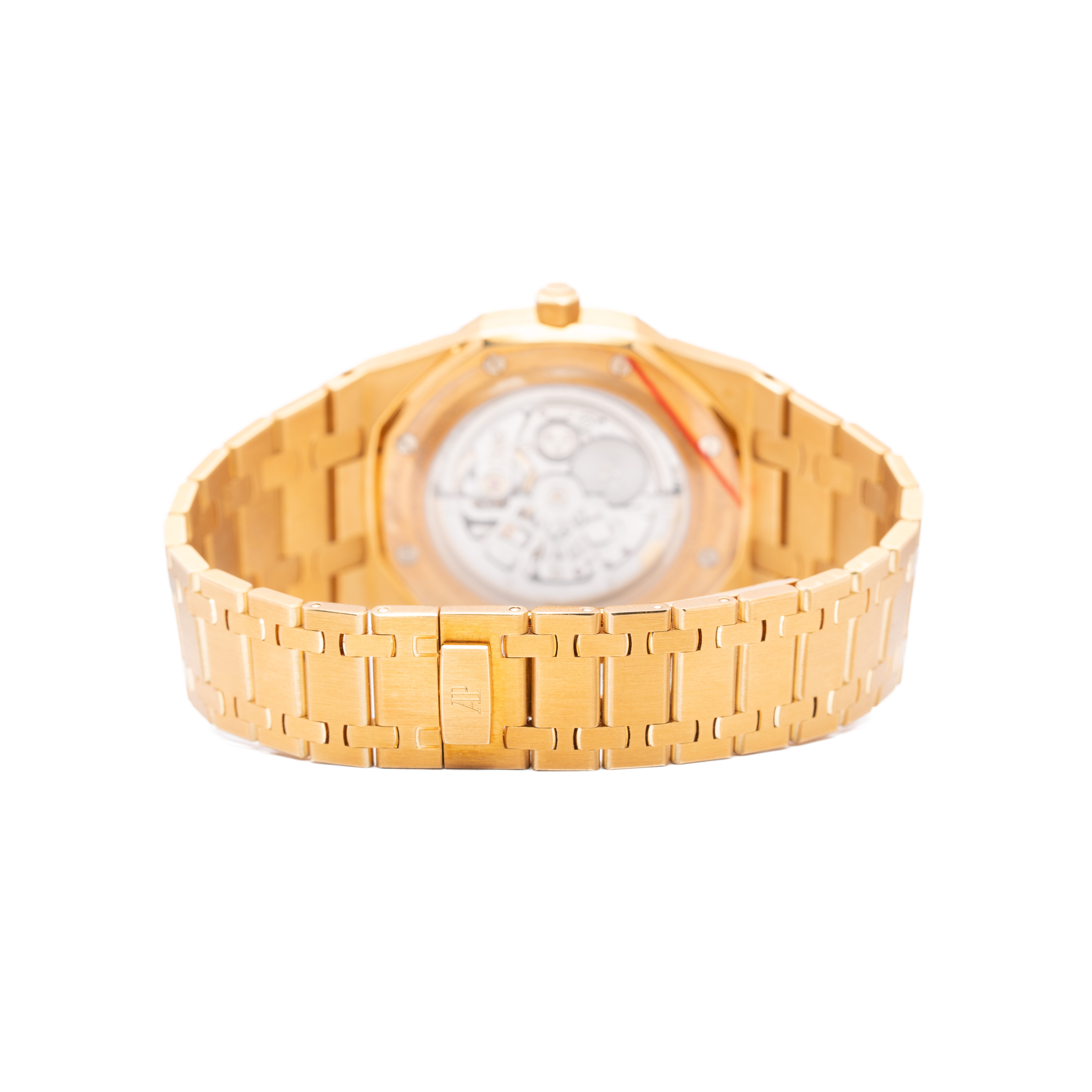 Audemars Piguet Royal Oak Perpetual Calendar mit einem 39 mm Gehäuse in 18kt. Gold und Faltschließe. Die Herren Audemars Piguet Uhr ist in einem ungetragenen Zustand. Weitere Produkteigenschaften sind: