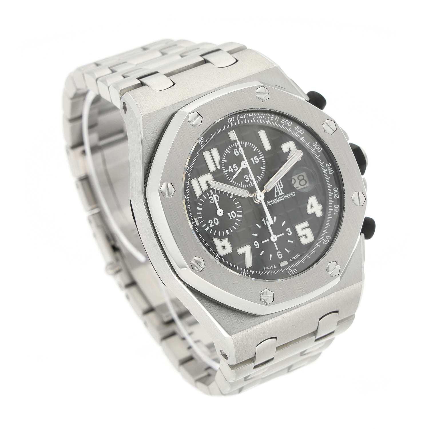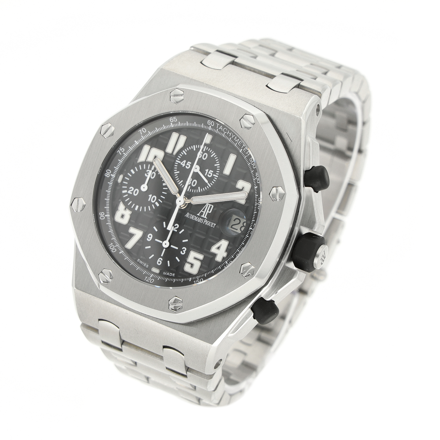 Audemars Piguet Offshore aus dem Jahre 2006 mit einem 42mm Gehäuse in Edelstahl und Doppelfaltschließe. Die Herren Audemars Piguet Uhr befindet sich in einem sehr guten Zustand.