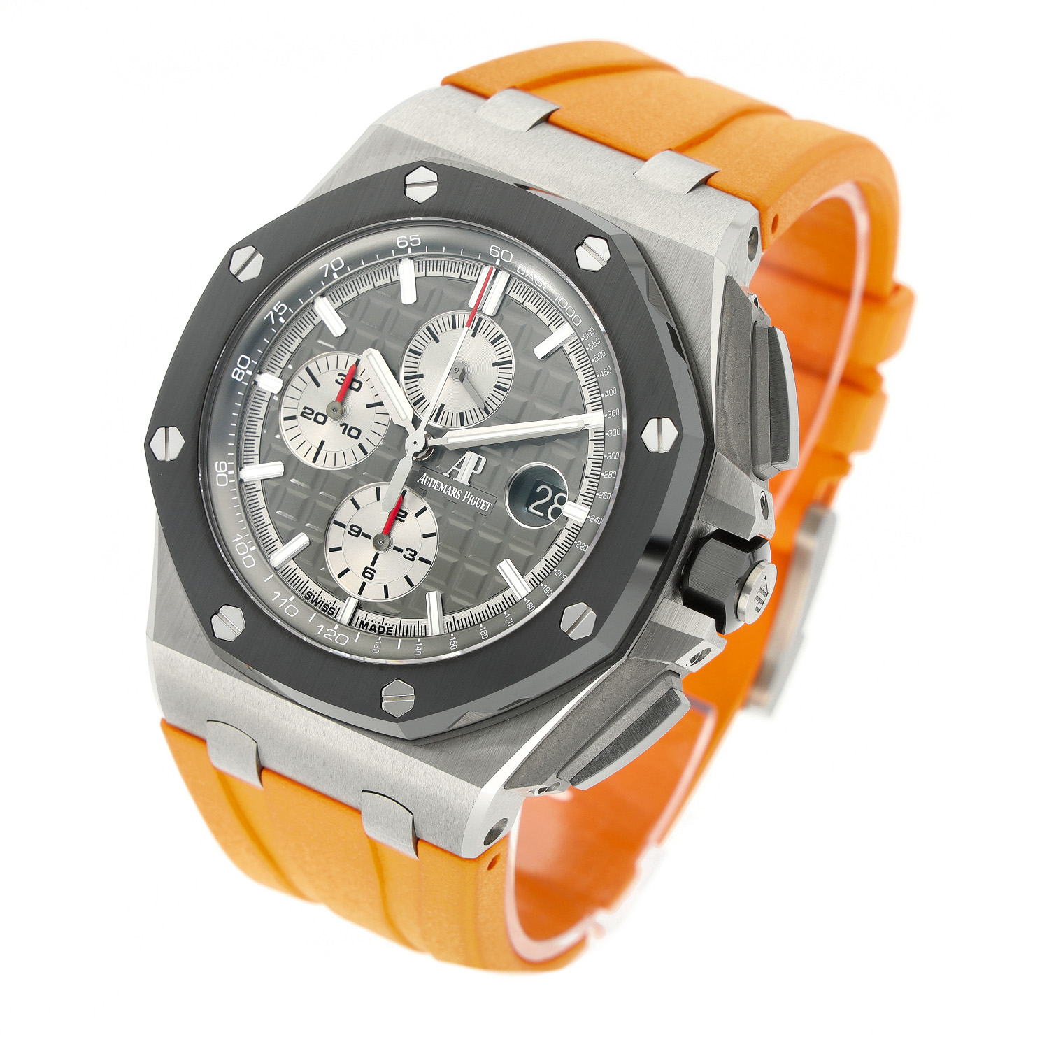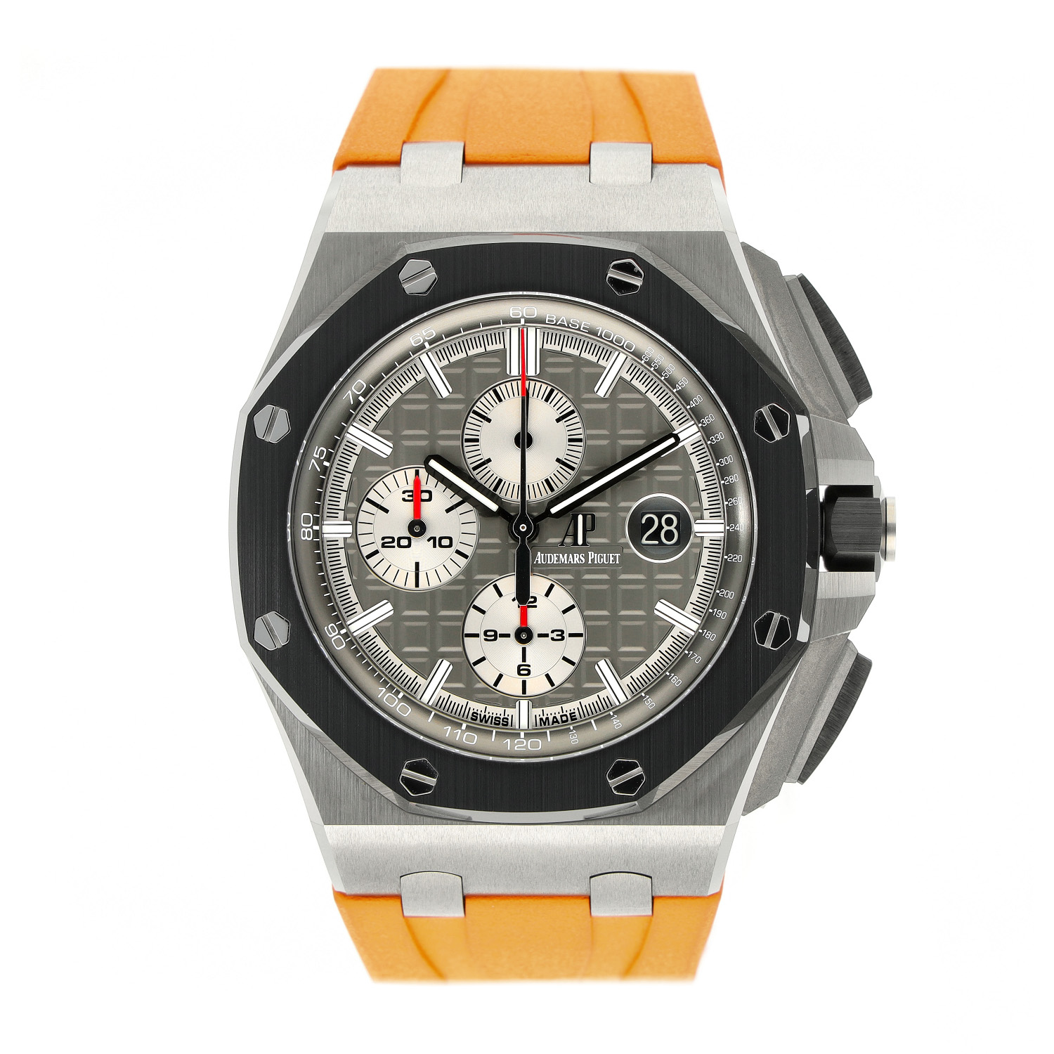 Audemars Piguet Offshore aus dem Jahre 2021 mit einem 44mm Gehäuse in Titan und Dornschließe. Die Herren Audemars Piguet Uhr befindet sich in einem sehr guten Zustand.