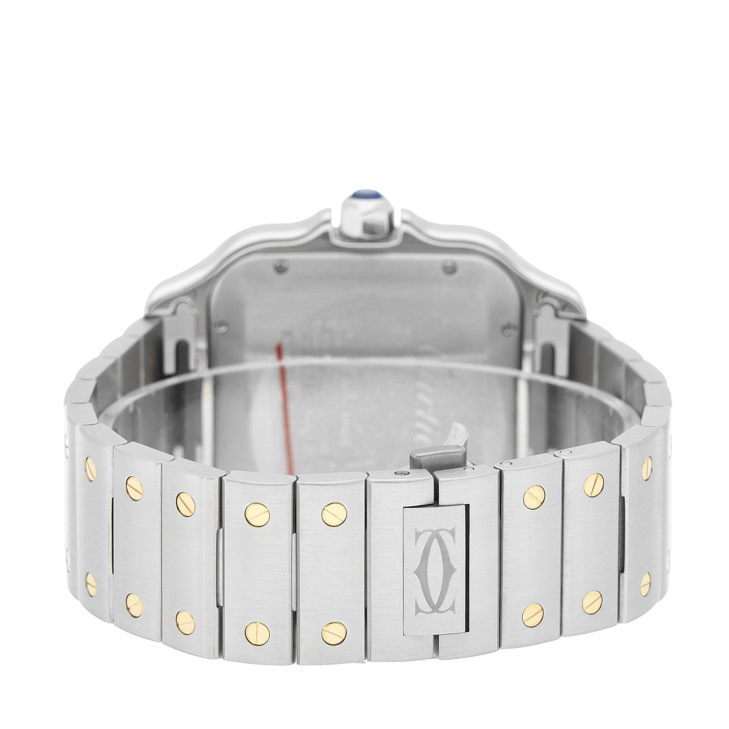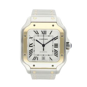 Cartier Santos aus dem Jahre 2018 mit einem 47mm Gehäuse in Gold/Stahl und Doppelfaltschließe. Die Herren Cartier Uhr befindet sich in einem sehr guten Zustand.