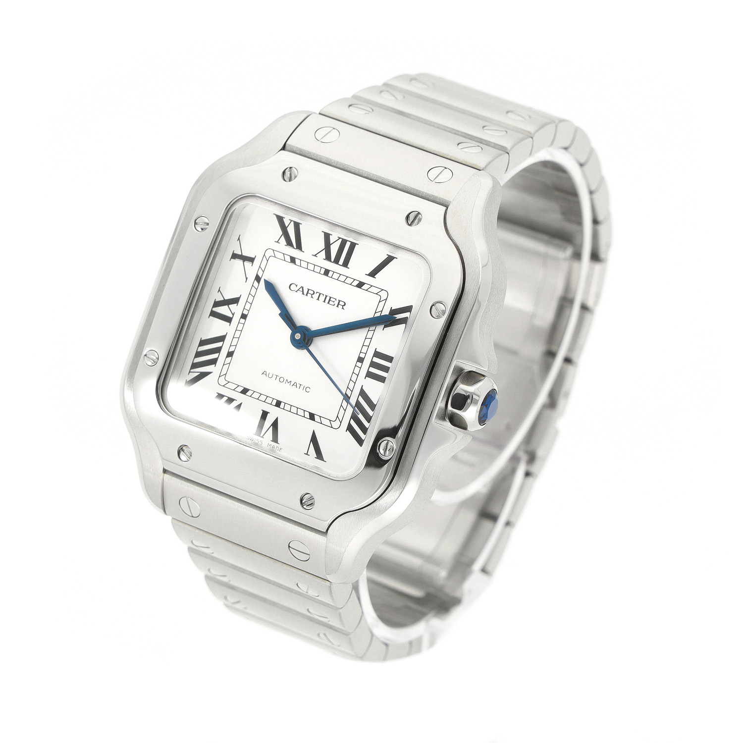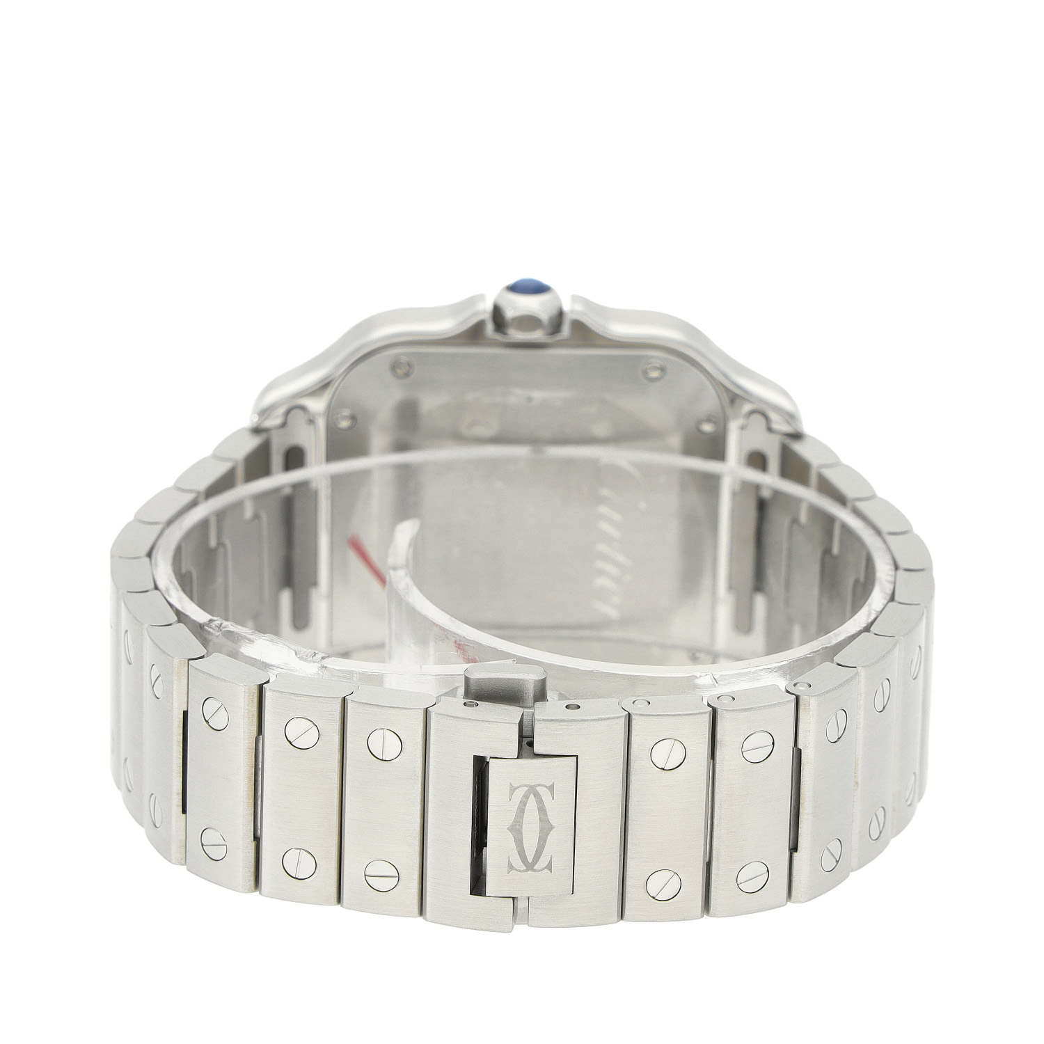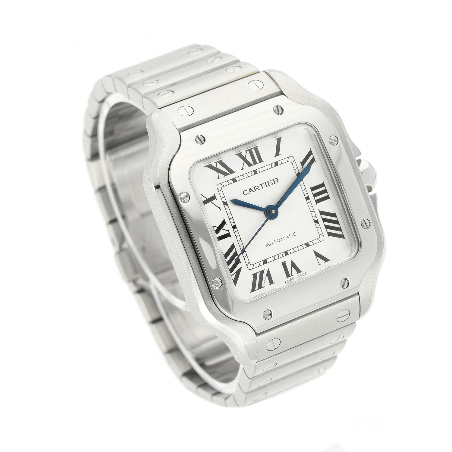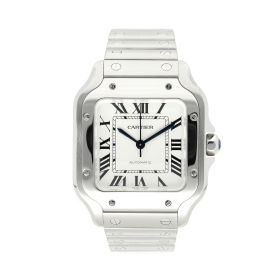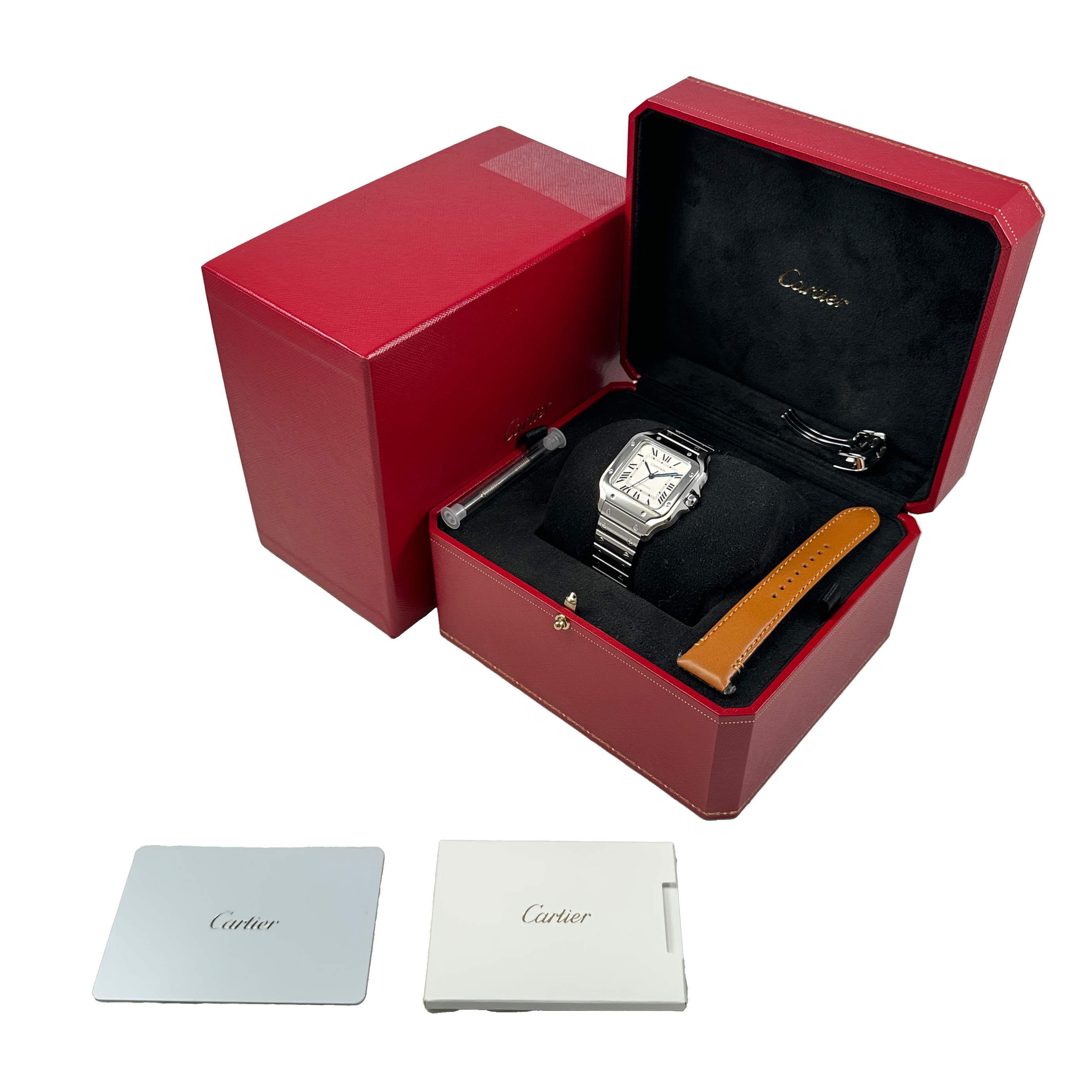 Cartier Santos aus dem Jahre 2025 mit einem 35.1mm Gehäuse in Edelstahl und Doppelfaltschließe. Die Unisex Cartier Uhr befindet sich in einem sehr guten Zustand.