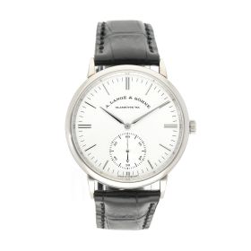 A. Lange Söhne Saxonia aus dem Jahre 2017 mit einem 38,5mm Gehäuse in Weißgold und Dornschließe. Die Herren A. Lange Söhne Uhr befindet sich in einem sehr guten Zustand.