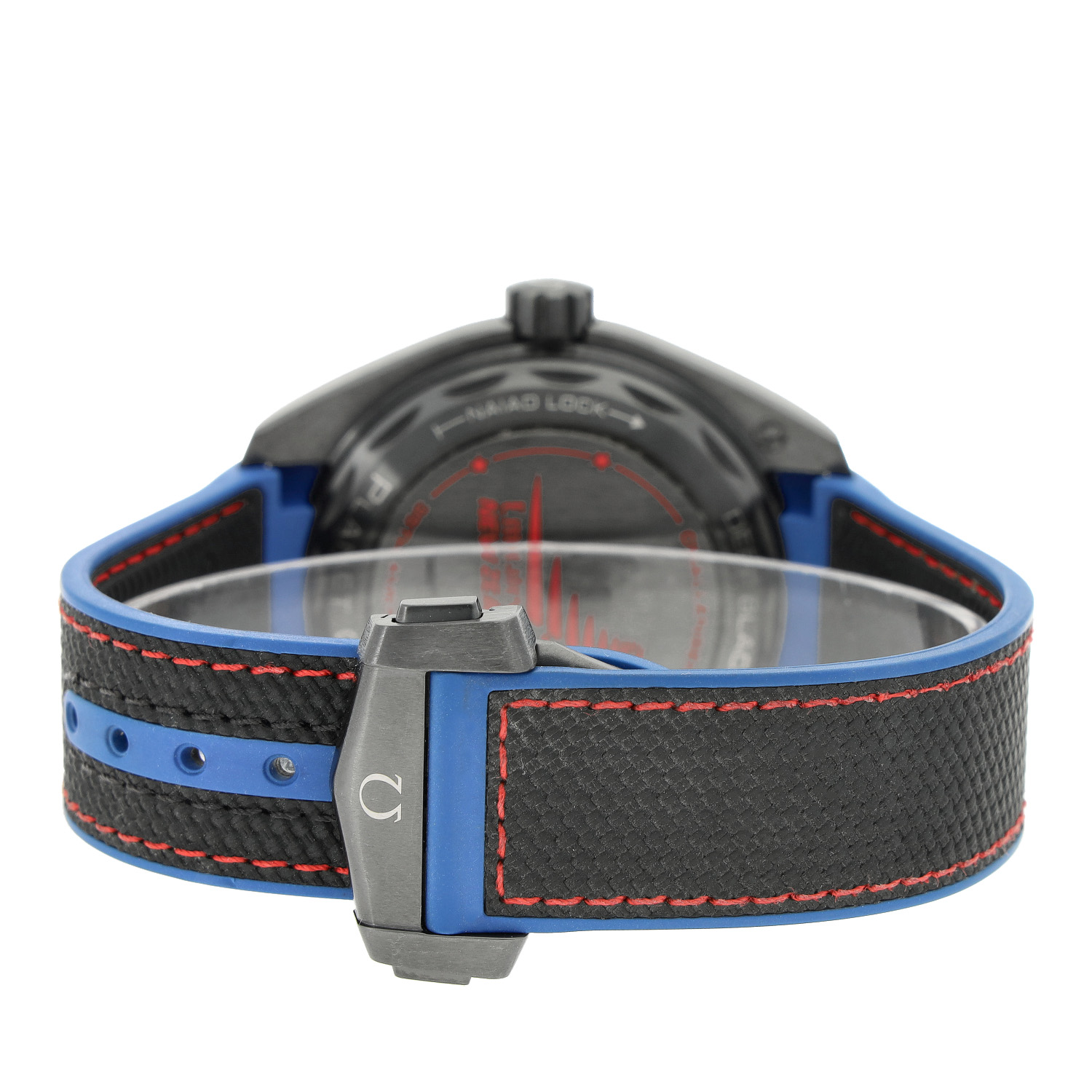 Omega mit einem 45,5mm Gehäuse in Keramik und Faltschließe. Die Herren Omega Uhr befindet sich in einem sehr guten Zustand.