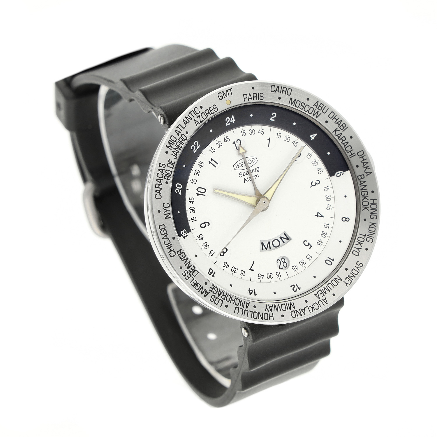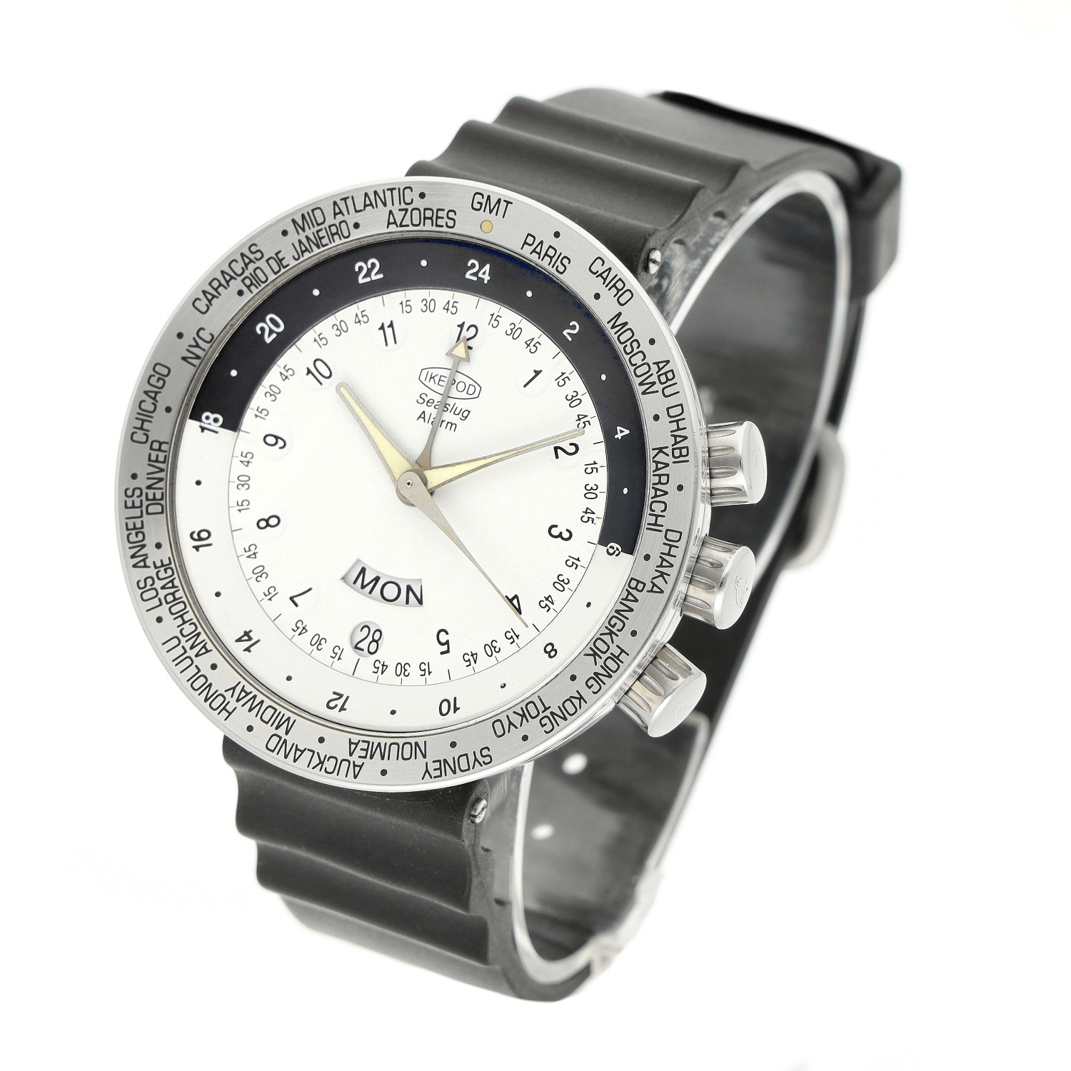 Ikepod mit einem 45mm Gehäuse in Edelstahl und Dornschließe. Die Herren Ikepod Uhr befindet sich in einem sehr guten Zustand.
