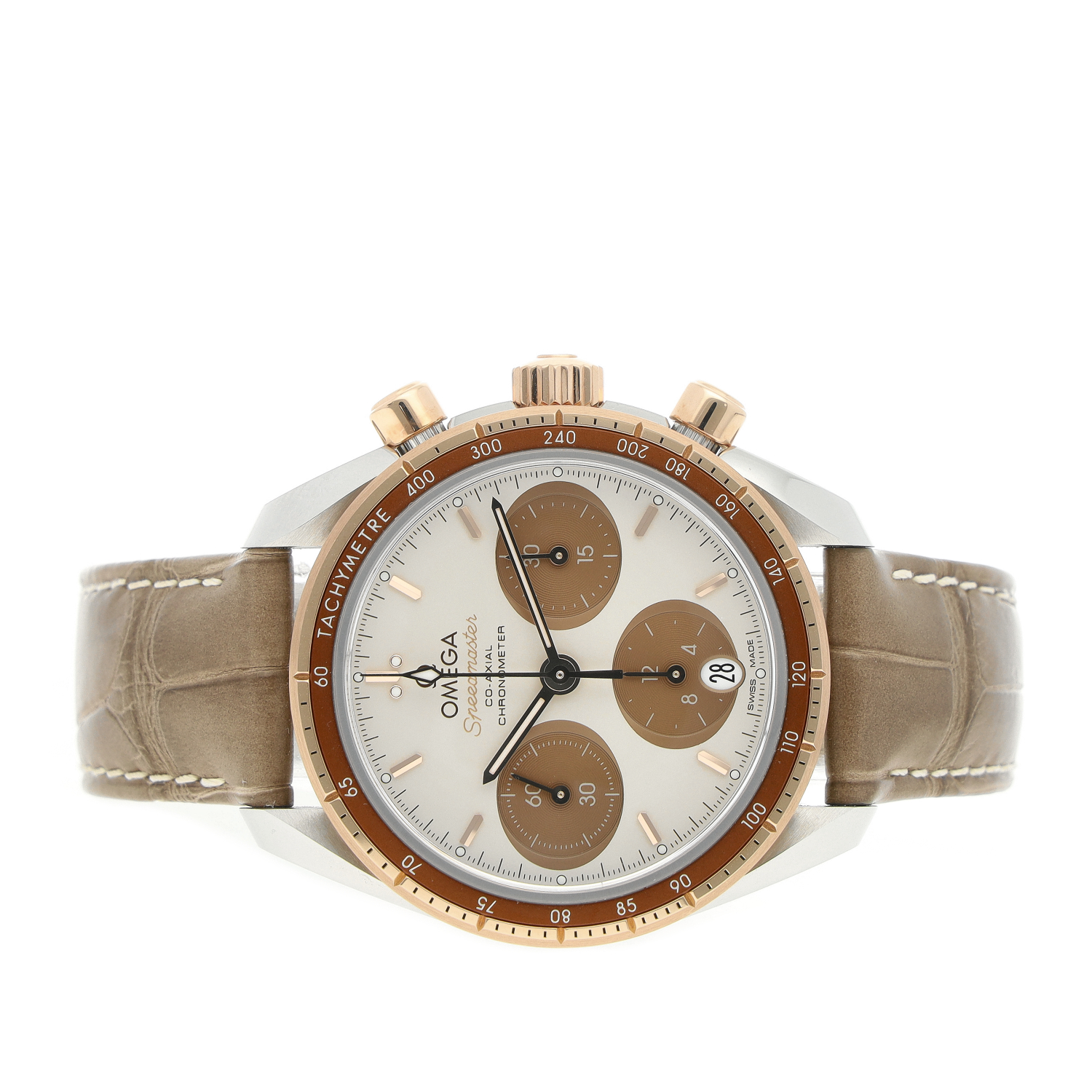 Omega Speedmaster aus dem Jahre 2023 mit einem 38mm Gehäuse in Gold/Stahl und Dornschließe. Die Herren Omega Uhr befindet sich in einem sehr guten Zustand.