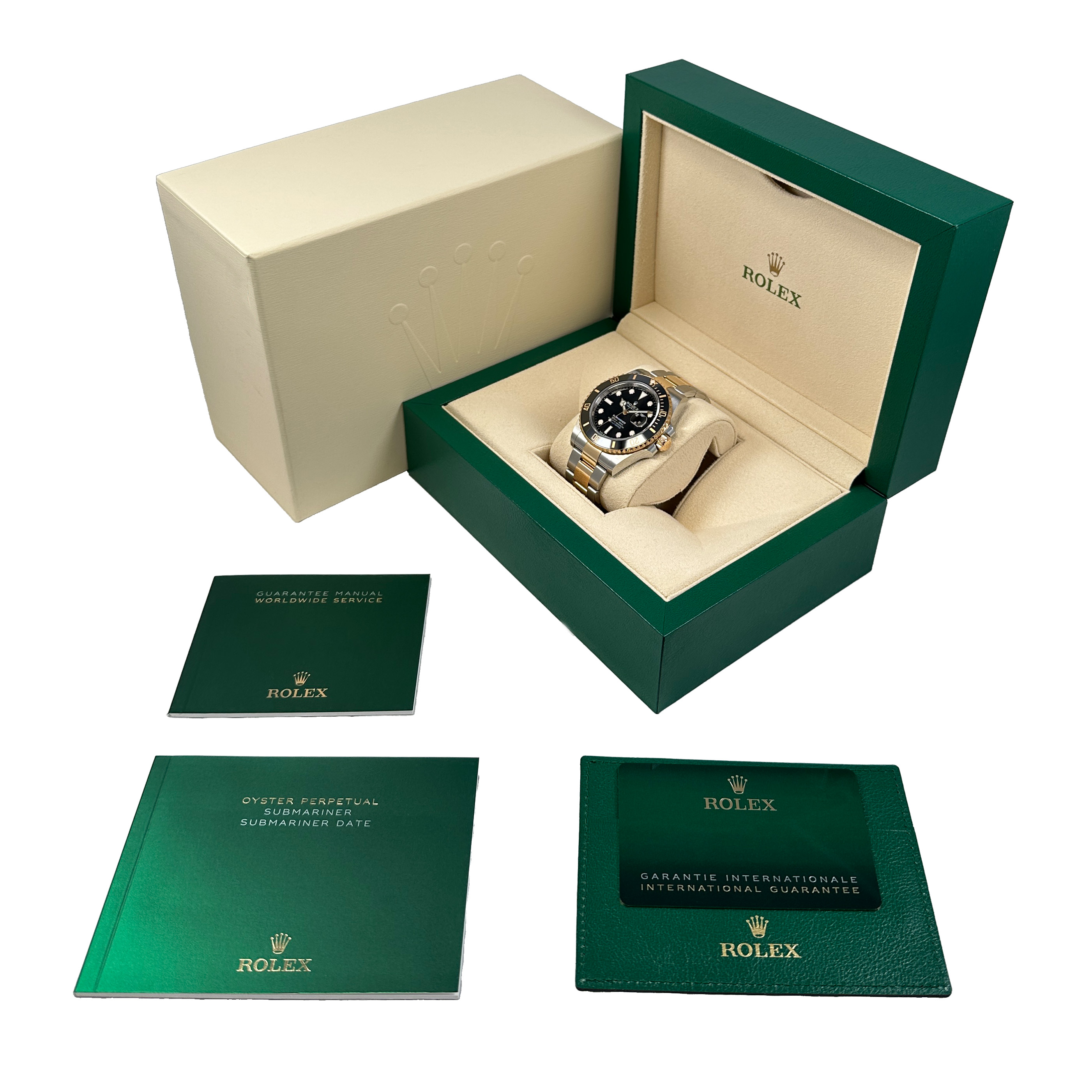 Rolex Submariner Date aus dem Jahre 2023 mit einem 41mm Gehäuse in Gold/Stahl und Faltschließe. Die Herren Rolex Uhr befindet sich in einem ungetragenem Zustand.