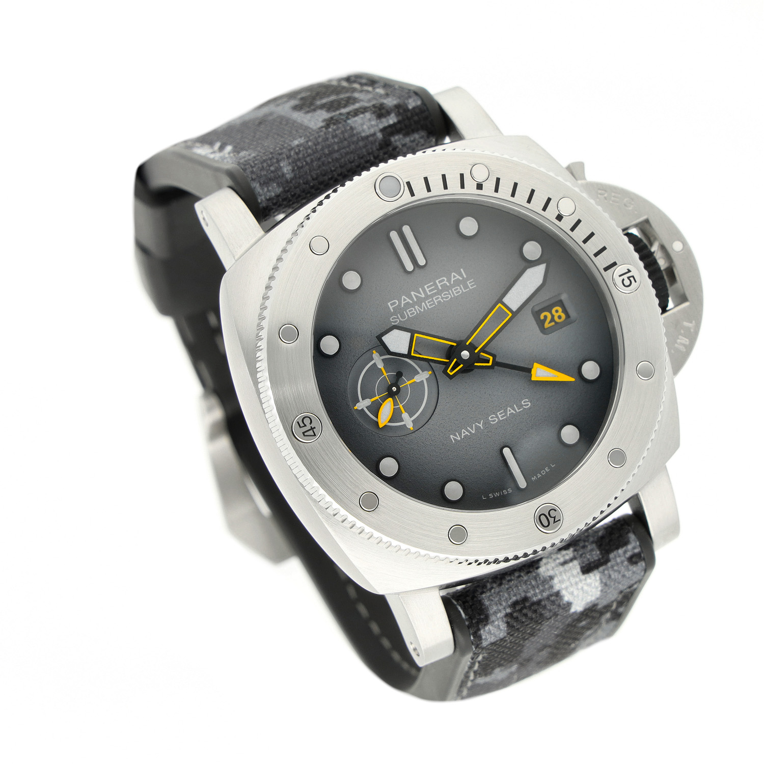 Panerai Luminor Submersible aus dem Jahre 2023 mit einem 44mm Gehäuse in Edelstahl und Dornschließe. Die Herren Panerai Uhr befindet sich in einem sehr guten Zustand.