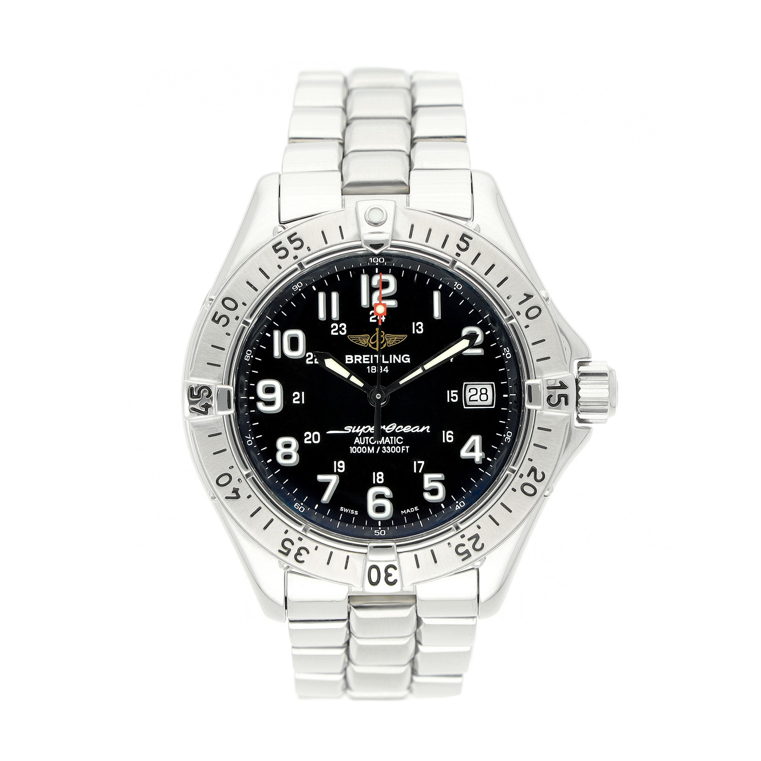 Breitling SuperOcean aus dem Jahre 2023 mit einem 44mm Gehäuse in Edelstahl und Faltschließe. Die Herren Breitling Uhr befindet sich in einem sehr guten Zustand.