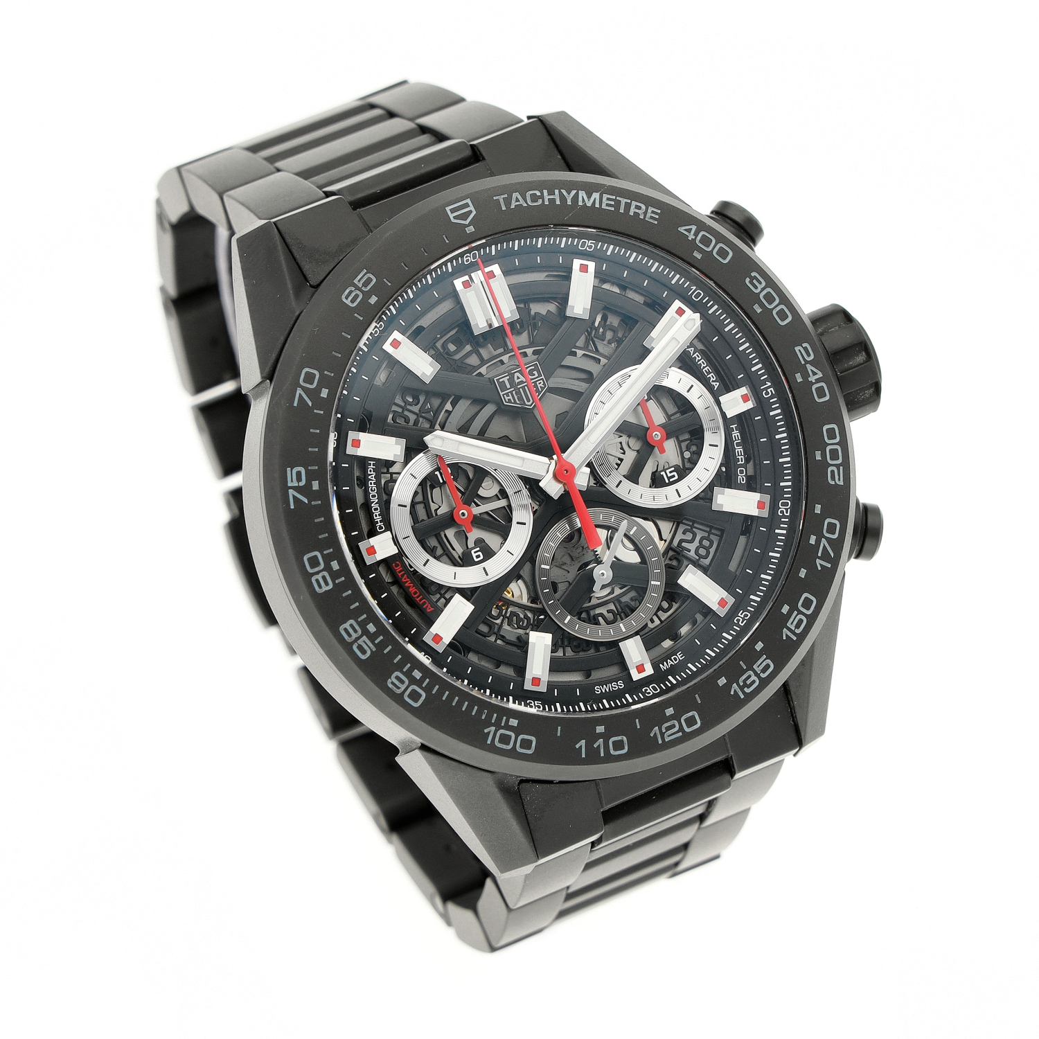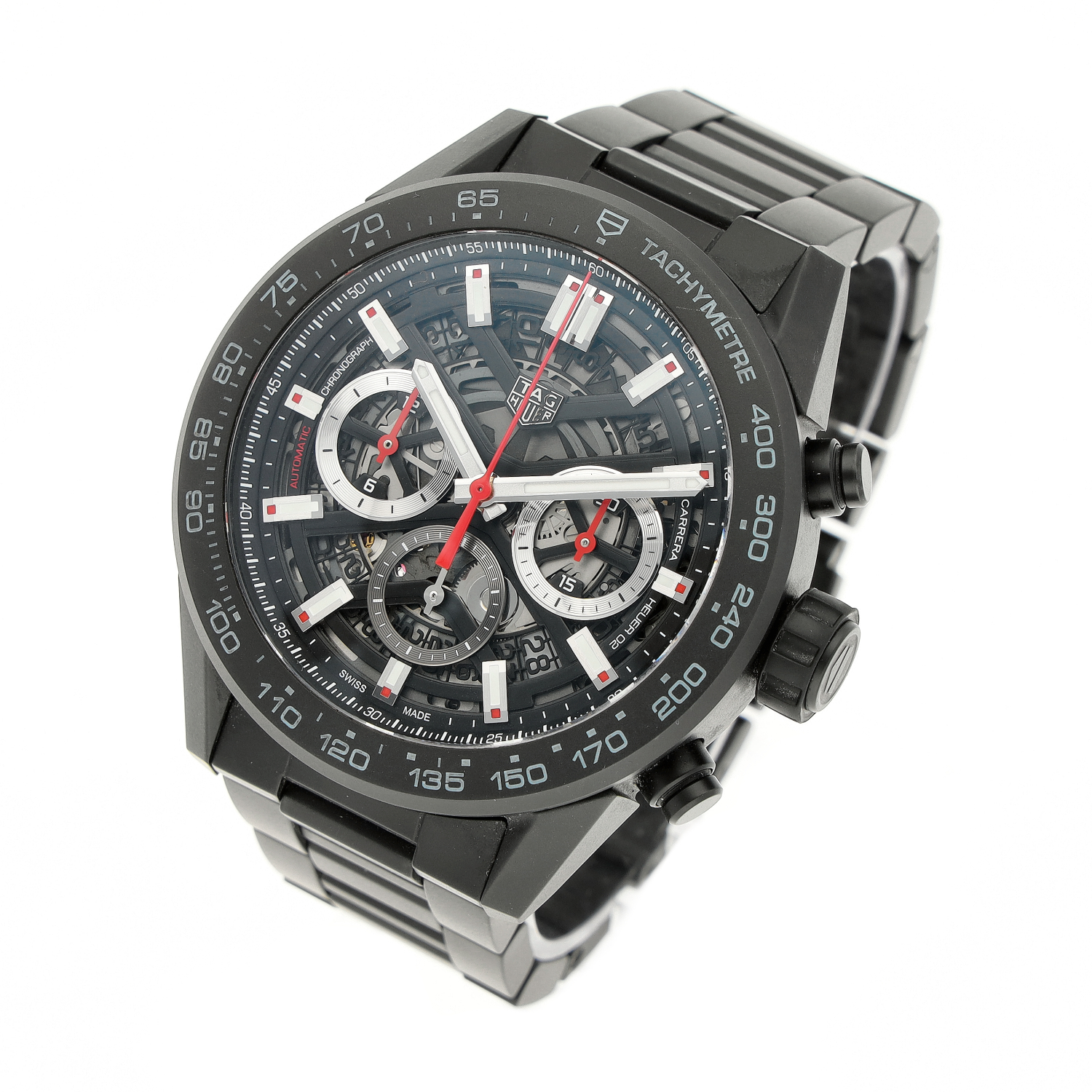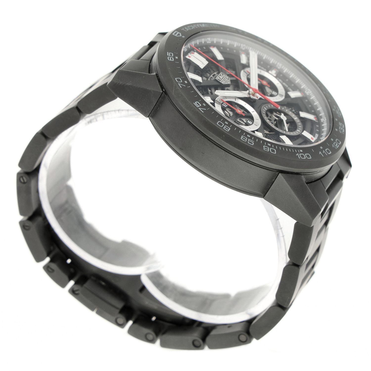 Tag Heuer Carrera aus dem Jahre 2022 mit einem 45mm Gehäuse in Keramik und Doppelfaltschließe. Die Herren Tag Heuer Uhr befindet sich in einem sehr guten Zustand.