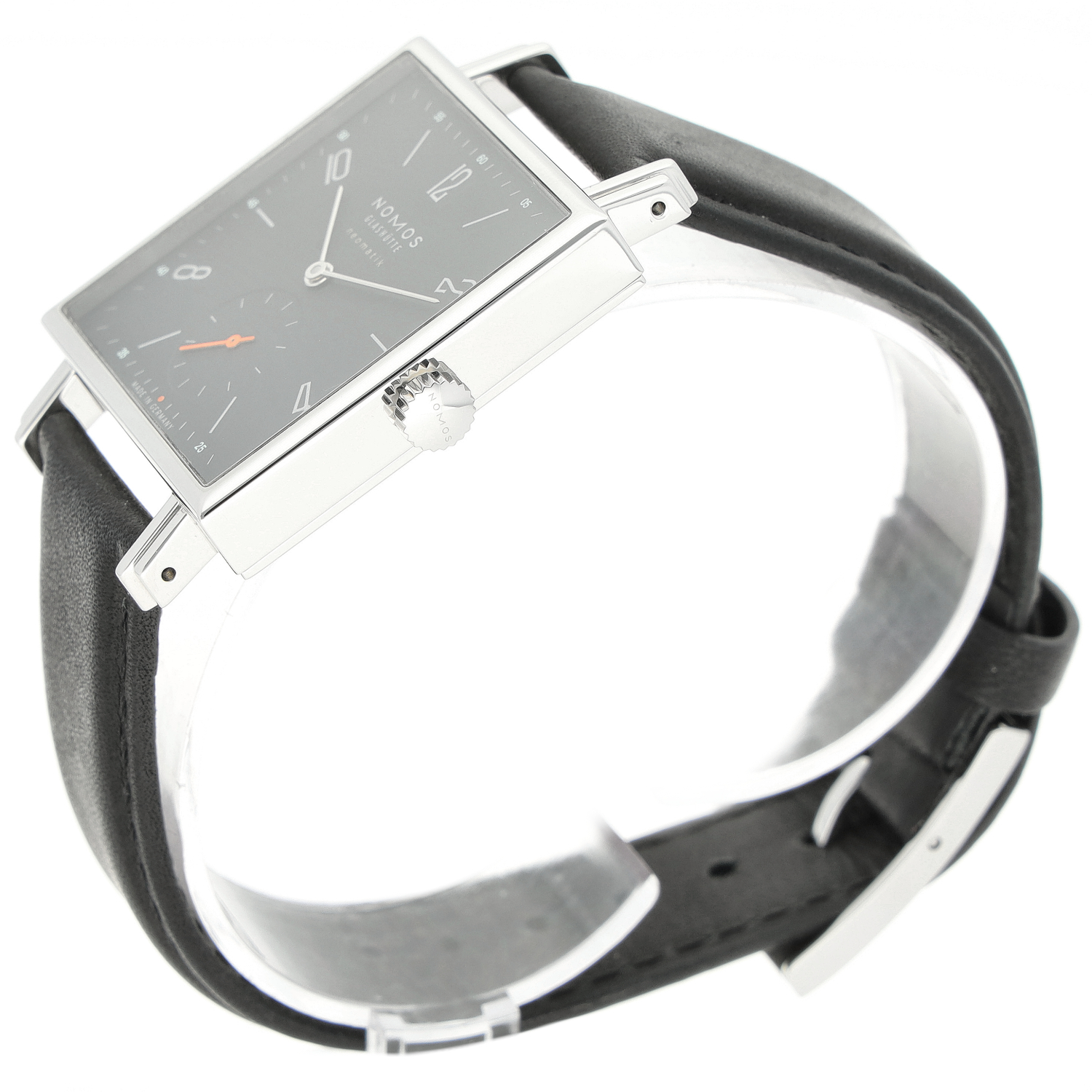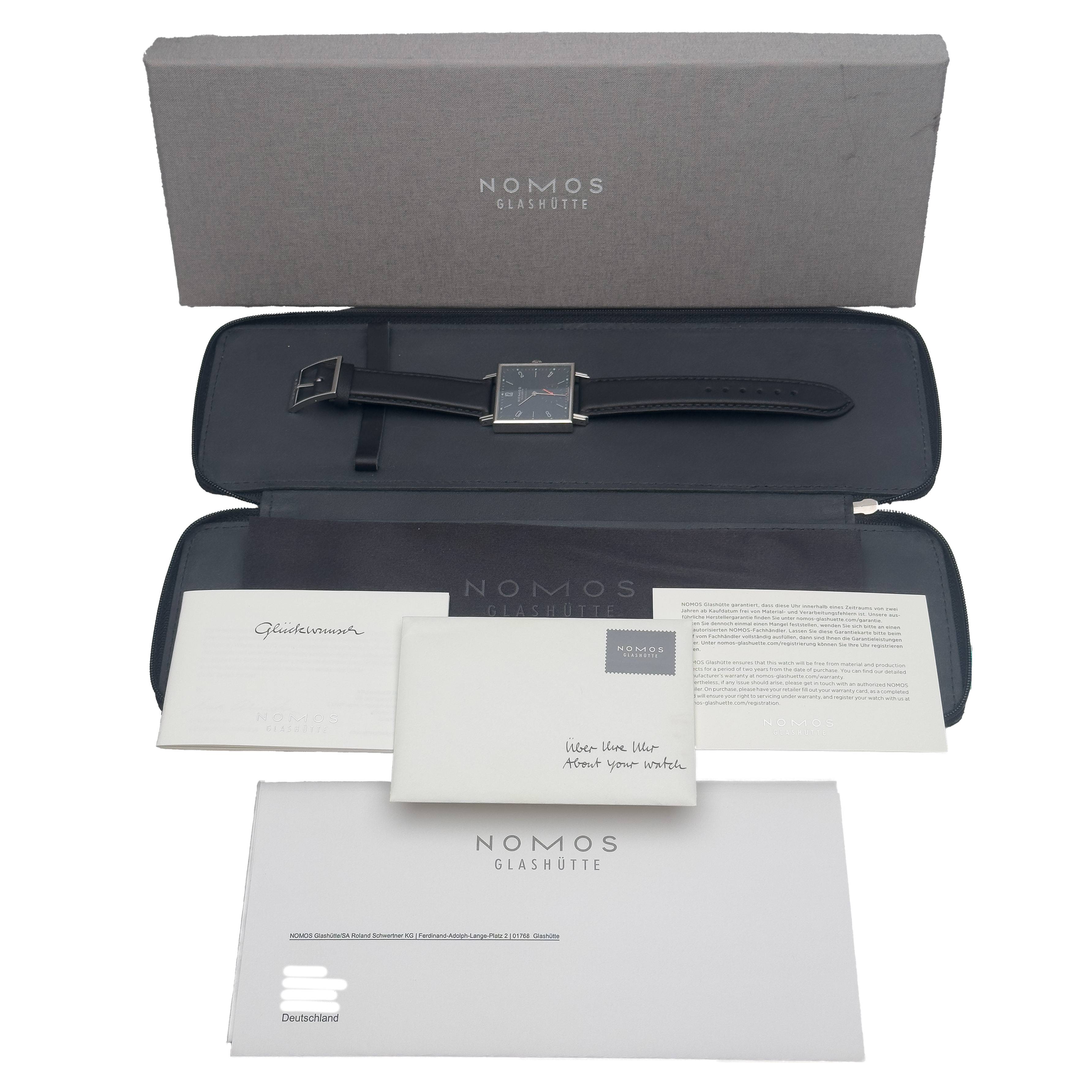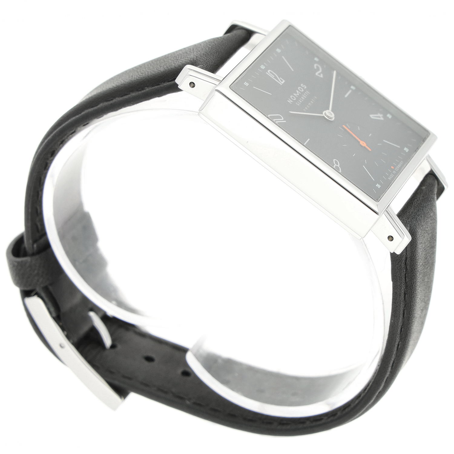 Nomos Tetra aus dem Jahre 2016 mit einem 33mm Gehäuse in Edelstahl und Dornschließe. Die Herren Nomos Uhr befindet sich in einem sehr guten Zustand.